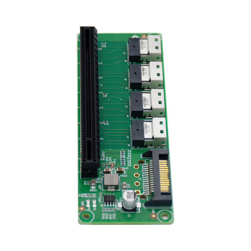 LRFCF941通过四个SFF-8654接入PCIe协议的扩展卡中,实现扩展出1个PCIe x16槽,单槽x16信号,支持更多的PCIe设备,服务器、终端扩展可以灵活实现搭建。